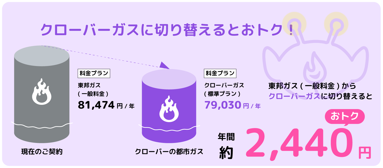 - 実際の都市ガス料金は使用状況や原料費調整額等により変動いたします。